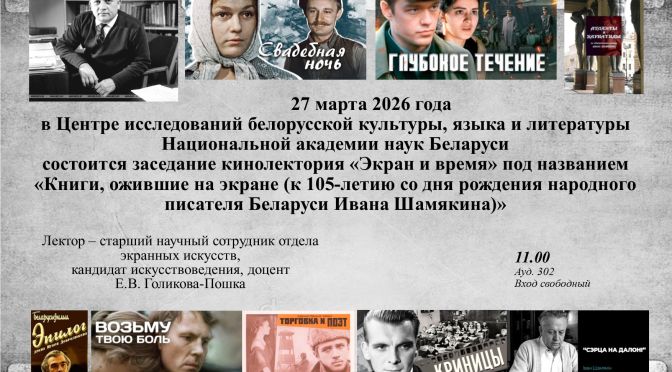 27 сакавіка 2026 года ў 11.00 (302 аўд.) у Цэнтры даследаванняў беларускай культуры, мовы і літаратуры Нацыянальнай акадэміі навук Беларусі адбудзецца пасяджэнне кіналекторыя "Экран і час" пад назвай «Книги, ожившие на экране (к 105-летию со дня рождения народного писателя Беларуси Ивана Шамякина)». Іван Шамякін заўсёды трымаў руку на пульсе часу.