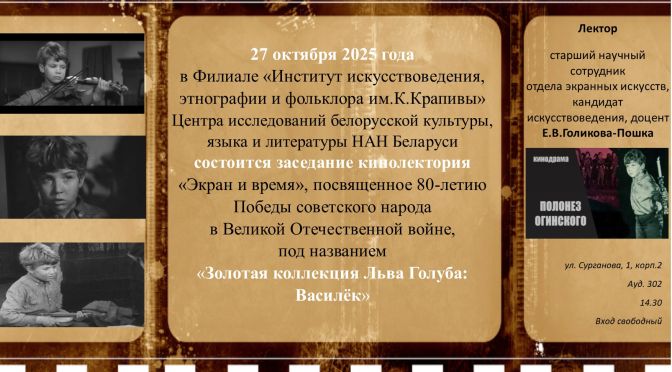 27 кастрычніка 2025 года ў Інстытуце мастацтвазнаўства, этнаграфіі і фальклору імя Кандрата Крапівы Цэнтра даследаванняў беларускай культуры, мовы і літаратуры Нацыянальнай акадэміі навук Беларусі адбылося пасяджэнне кіналекторыя "Экран и время", прысвечанае 80-годдзю Перамогі савецкага народа ў Вялікай Айчыннай вайне, пад назвай "Золотая коллекция Льва Голуба: Василёк». Лектар — старшы навуковы супрацоўнік аддзела экранных мастацтваў кандыдат мастацтвазнаўства, дацэнт Я.У. Голікава-Пошка. Фільм «Паланэз Агінскага» ў 1972 г. быў удастоены