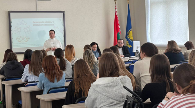 19 февраля 2026 года к Международному дню родного языка на филологическом факультете прошла Литературная гостиная «Белорусские обряды и традиции: культурное наследие нашего народа» с научным сотрудником отдела фольклористики и культуры славянских народов Института искусствоведения, этнографии и фольклора имени Кондрата Крапивы Центра исследований белорусской культуры, языка и литературы НАН Беларуси Цатуровой